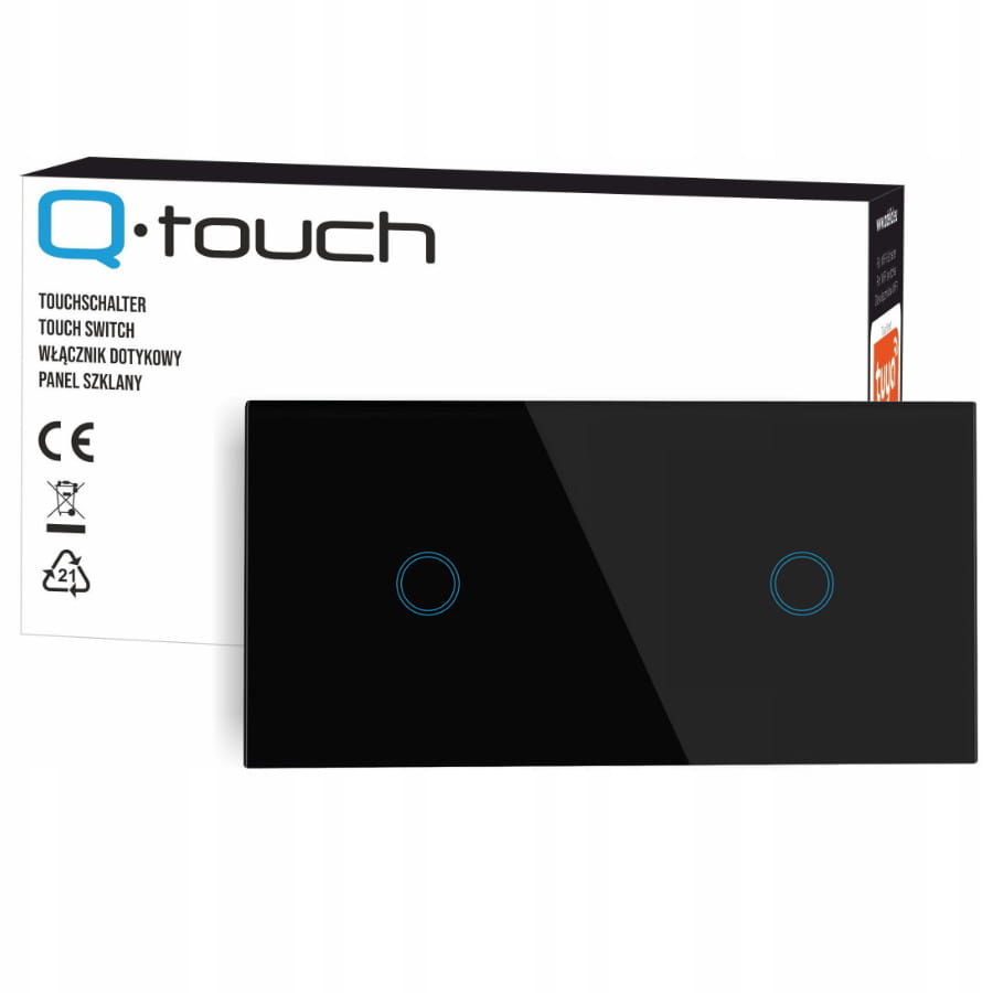 Aby złożyć pełny, podwójny włącznik światła, należy dokupić dwa mechanizmy dotykowe pojedyncze, kompatybilne z panelami serii QTouch.