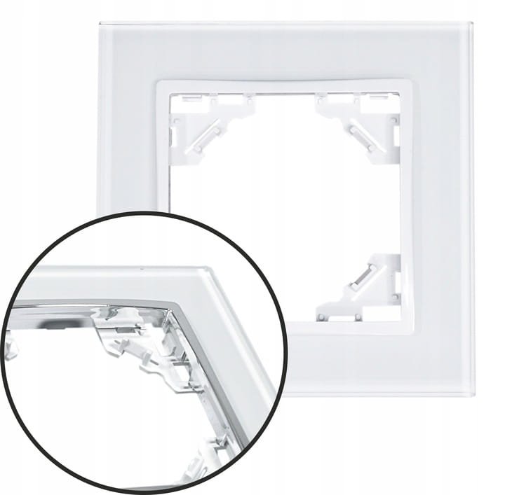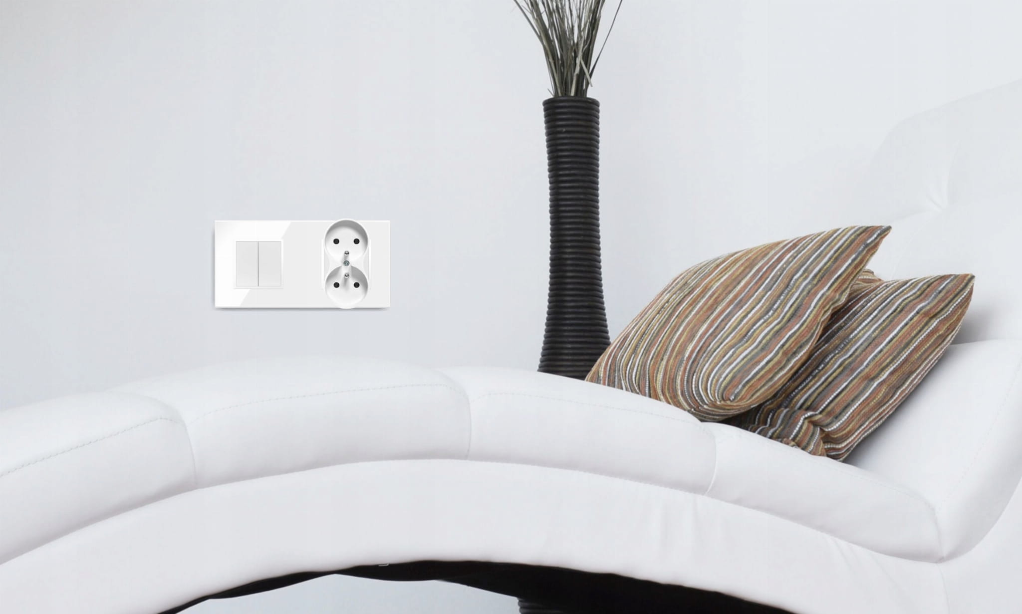 WŁĄCZNIK SZKLANY POJEDYNCZY BIAŁY, GNIAZDO PODWÓJNE, W RAMCE PODWÓJNEJ BIAŁEJ PREMIUM