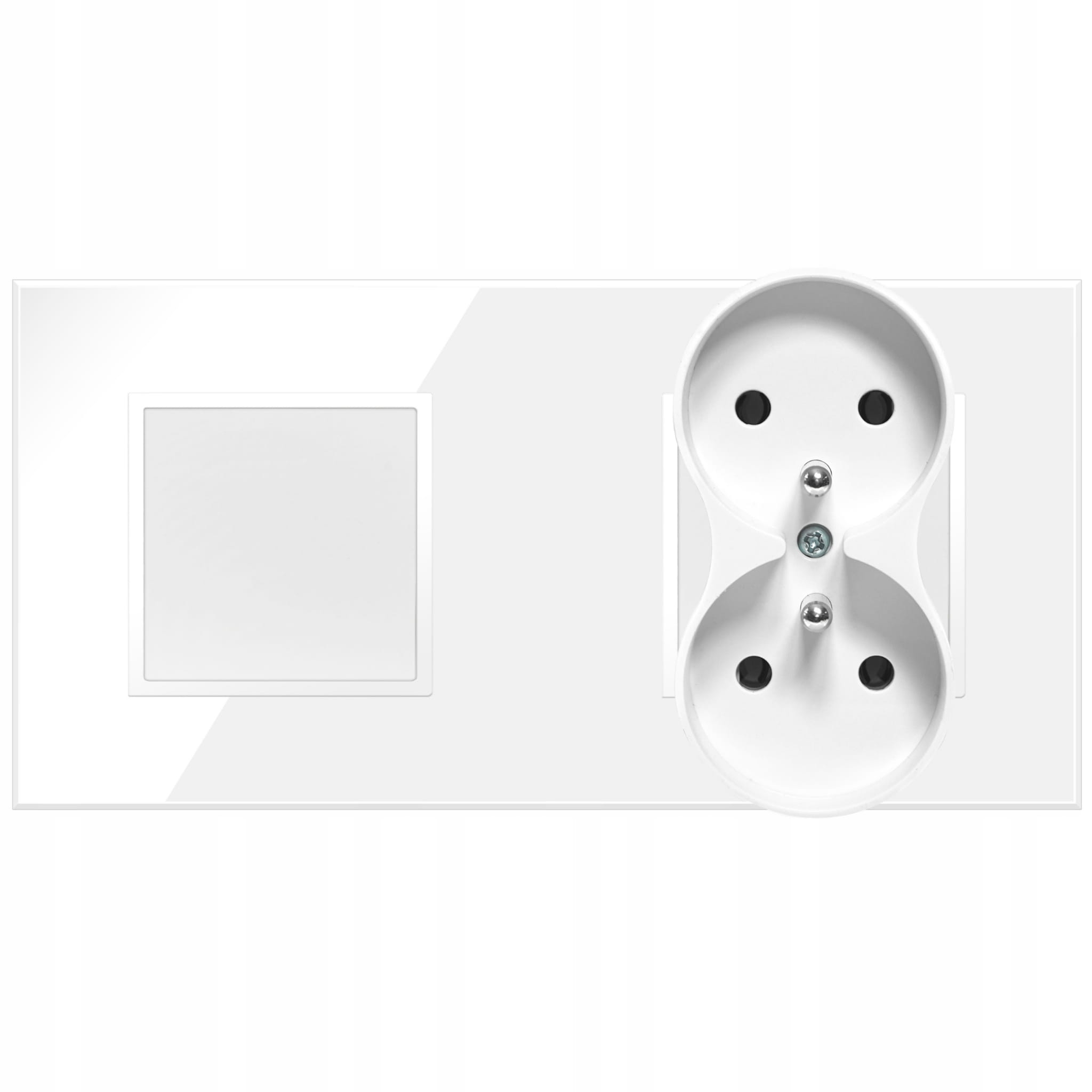 Włącznik światła szklany biały pojedynczy gniazdko podwójne z bolcem szkło