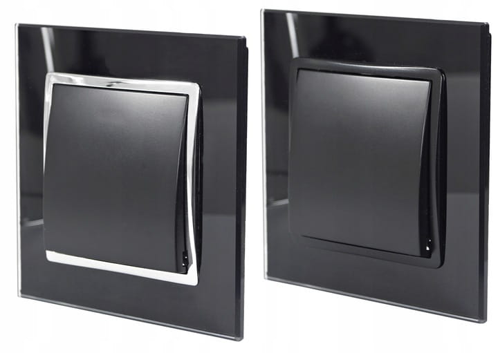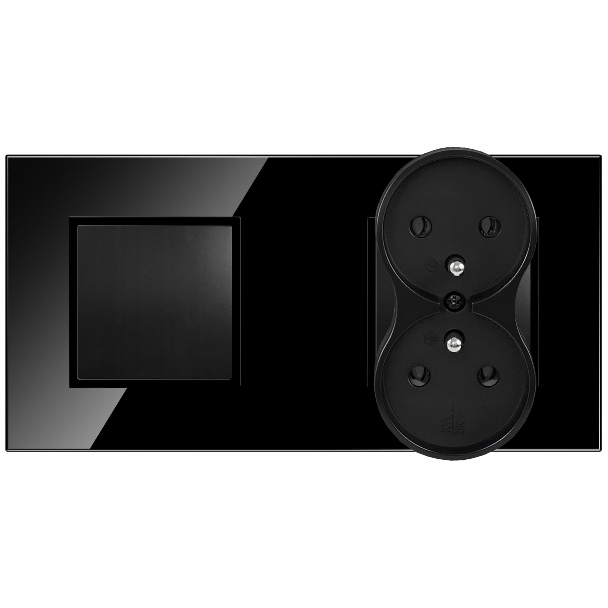 WŁĄCZNIK SZKLANY POJEDYNCZY GNIAZDO SZKLANE PODWÓJNE W RAMCE PODWÓJNEJ CZARNE PREMIUM