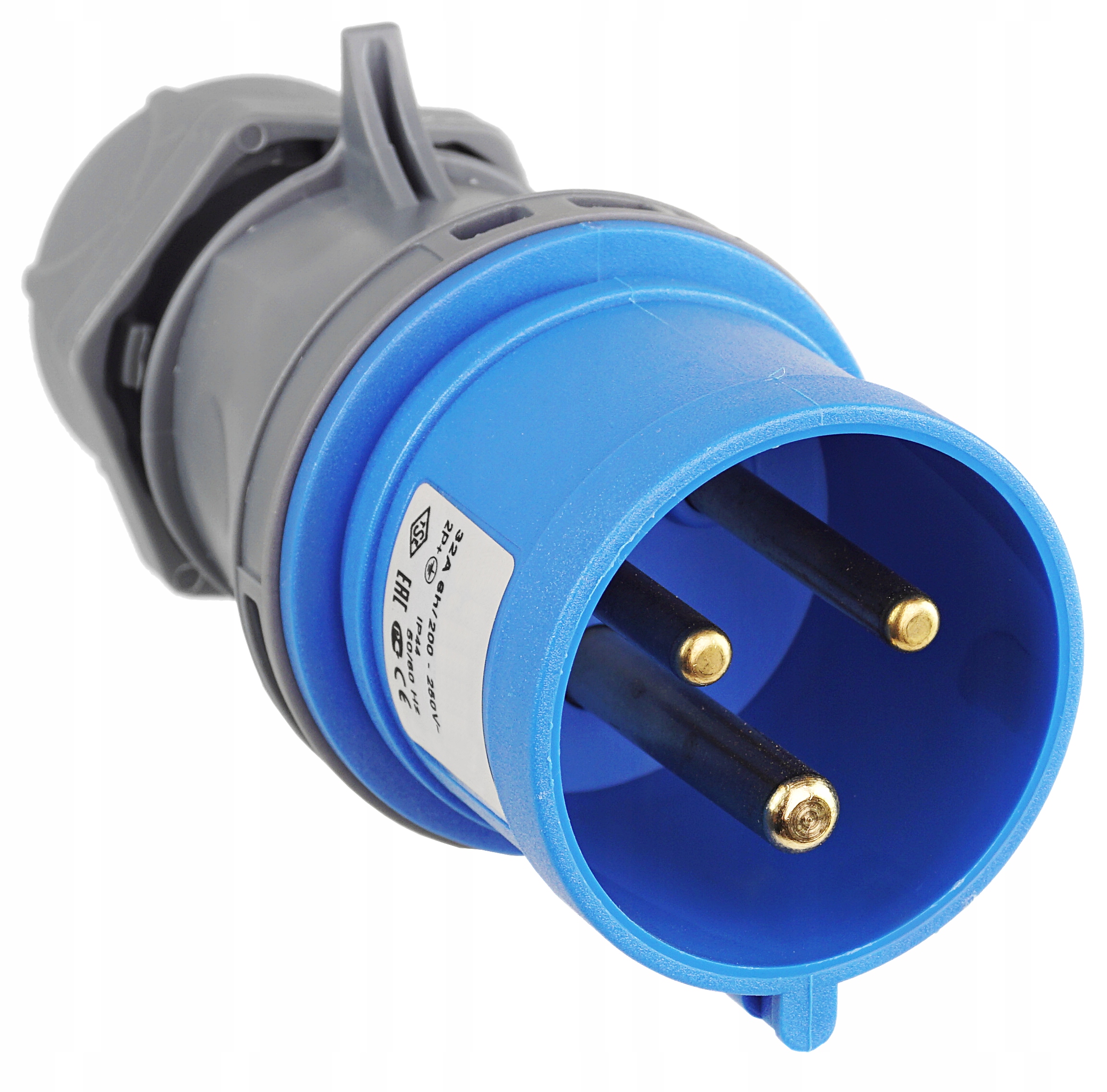 Maksymalne obsługiwane napięcie to 240V, a prąd znamionowy wynosi 32A. Produkty są barwy szaro- niebieskiej i mają gwarantowany stopień ochrony na poziomie IP44. Styki wykonane są z mosiądzu.