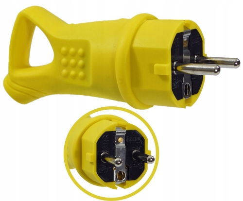 Wykonanie z gumy gwarantuje długą żywotność wyrobu. Wtyk przeznaczony jest do zastosowań wewnętrznych i zewnętrznych. Znakomicie sprawdza się do pracy w warunkach wymagających ochrony IP44.