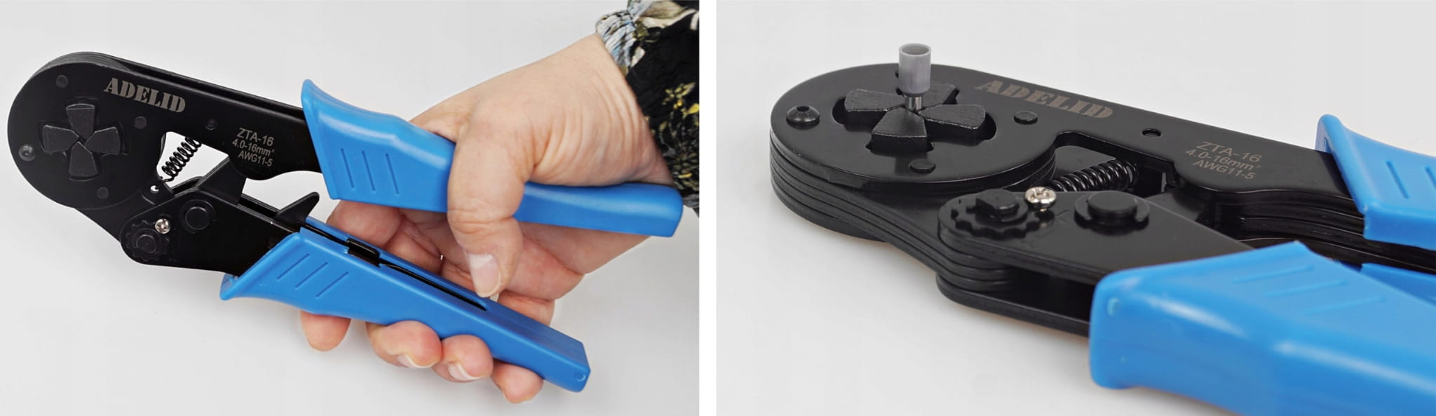 - Pewność dobrego zaciśnięcia dzięki systemowi blokującemu pozwalającemu na otwarcie szczypiec dopiero po zaciśnięciu końcówki,