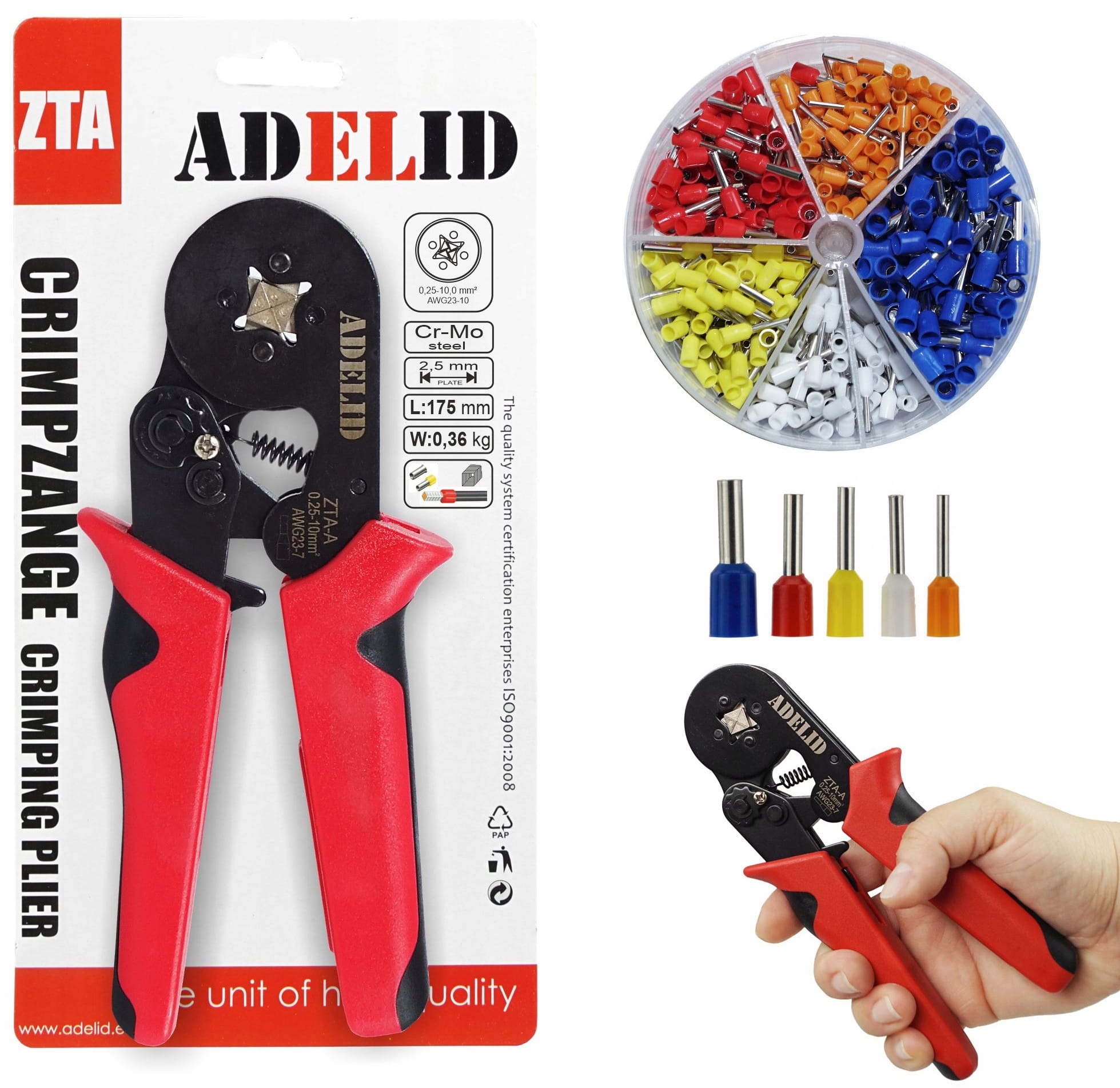 - Idealny zestaw do zakańczania odizolowanych końcówek przewodów.
