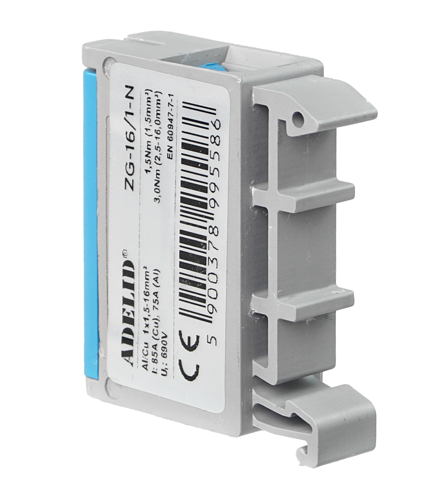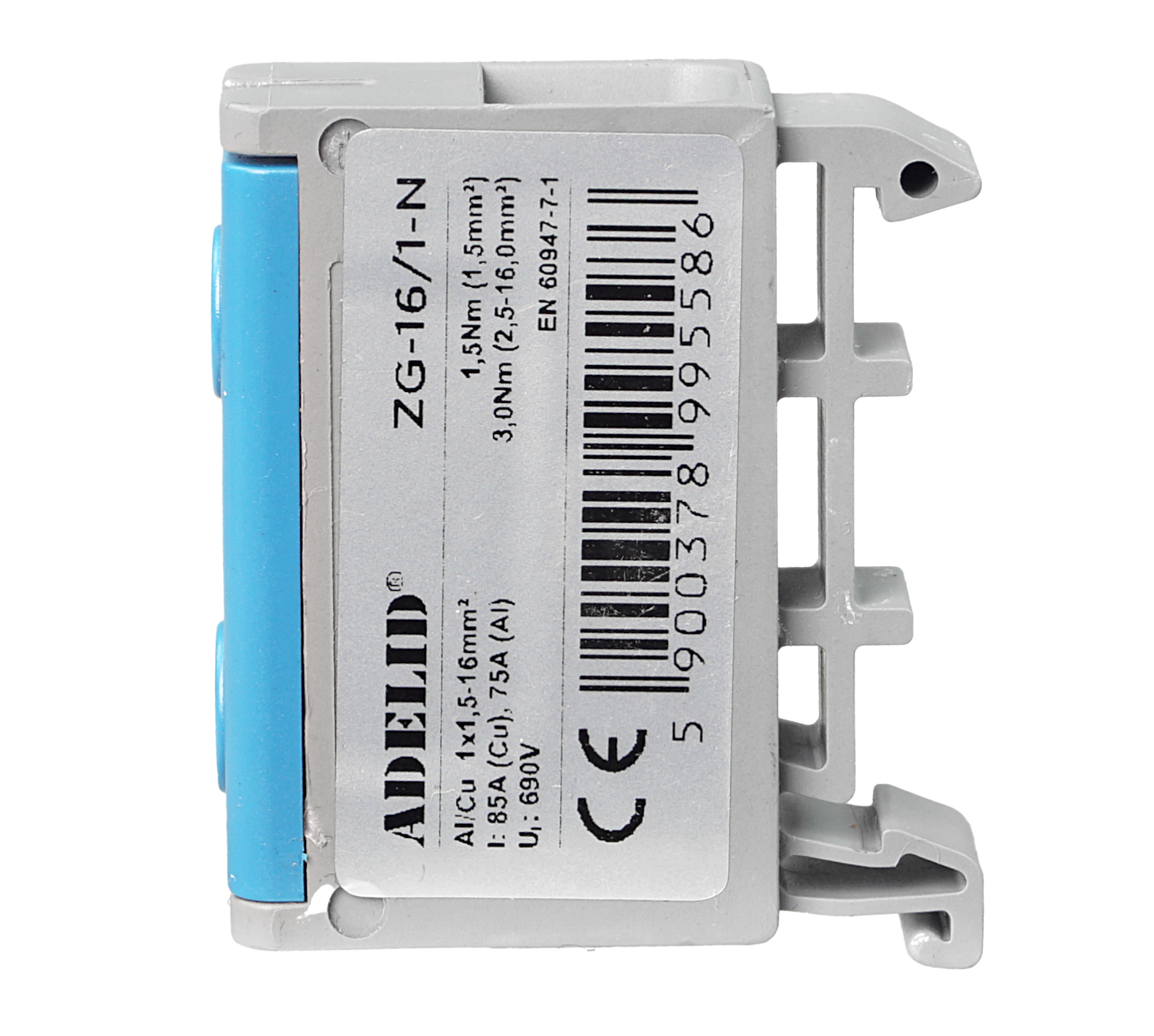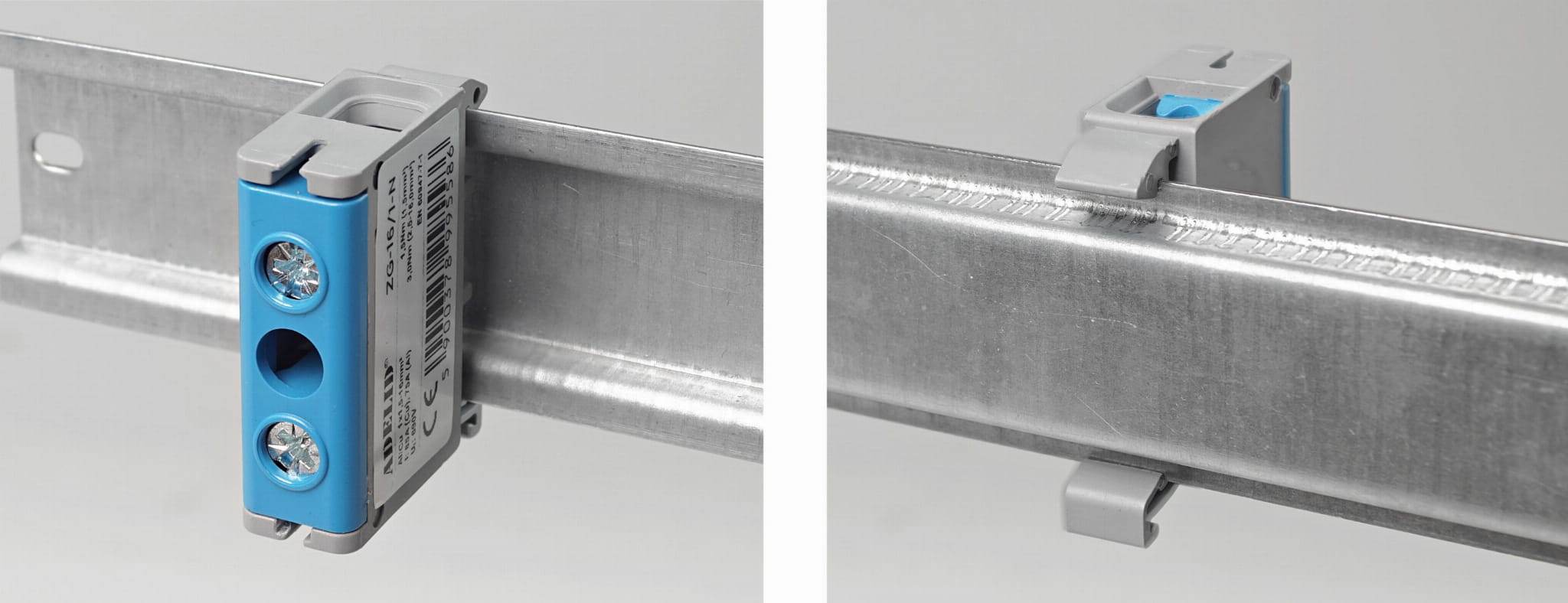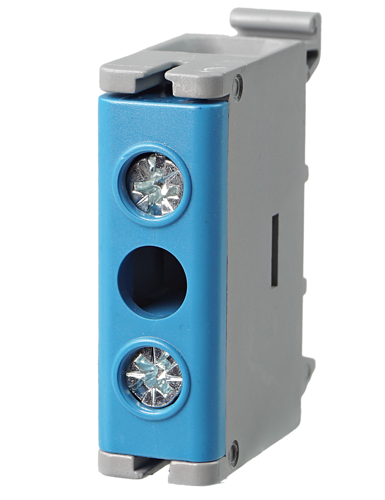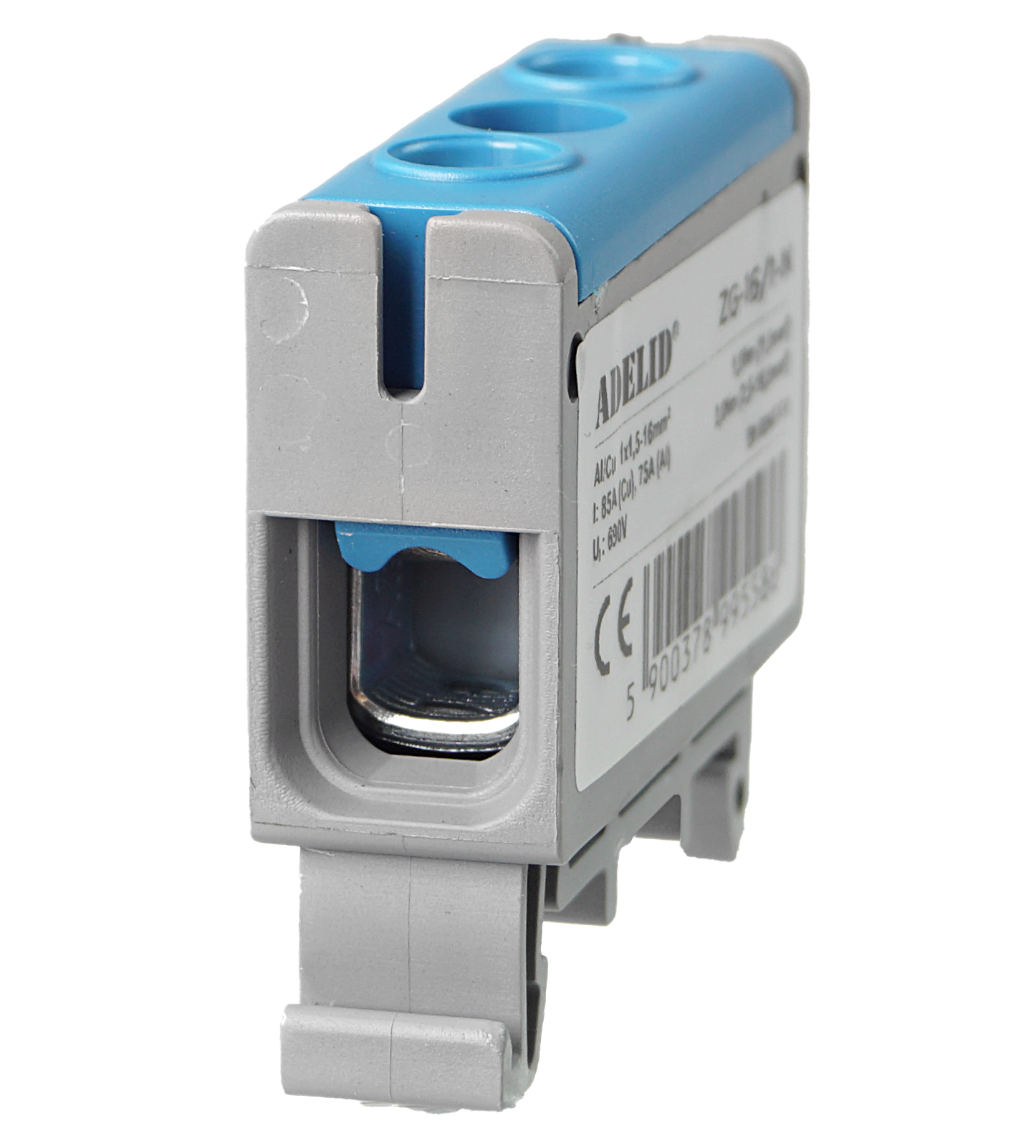 Uniwersalna listwa zaciskowa ZG, 1-polowa, z dwoma otworami, dla przewodów o przekroju od 1,5 do 16 mm2.
