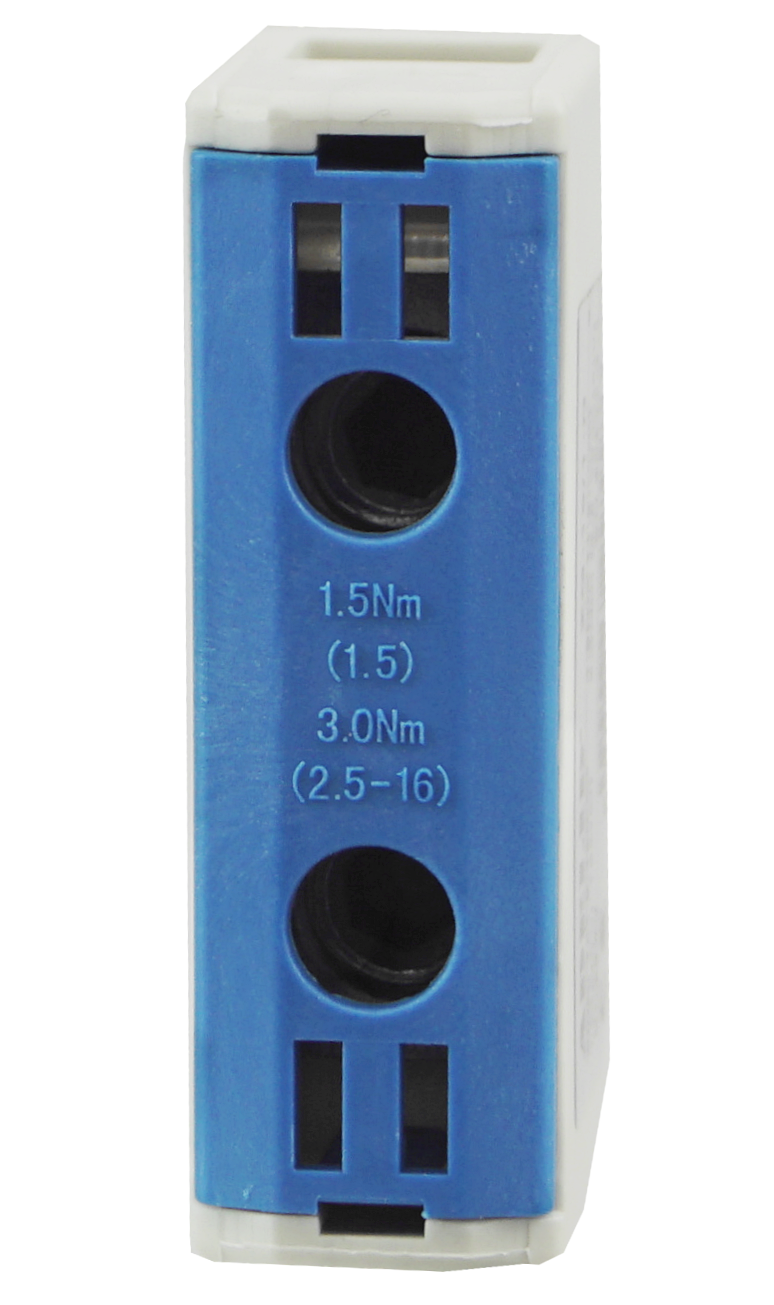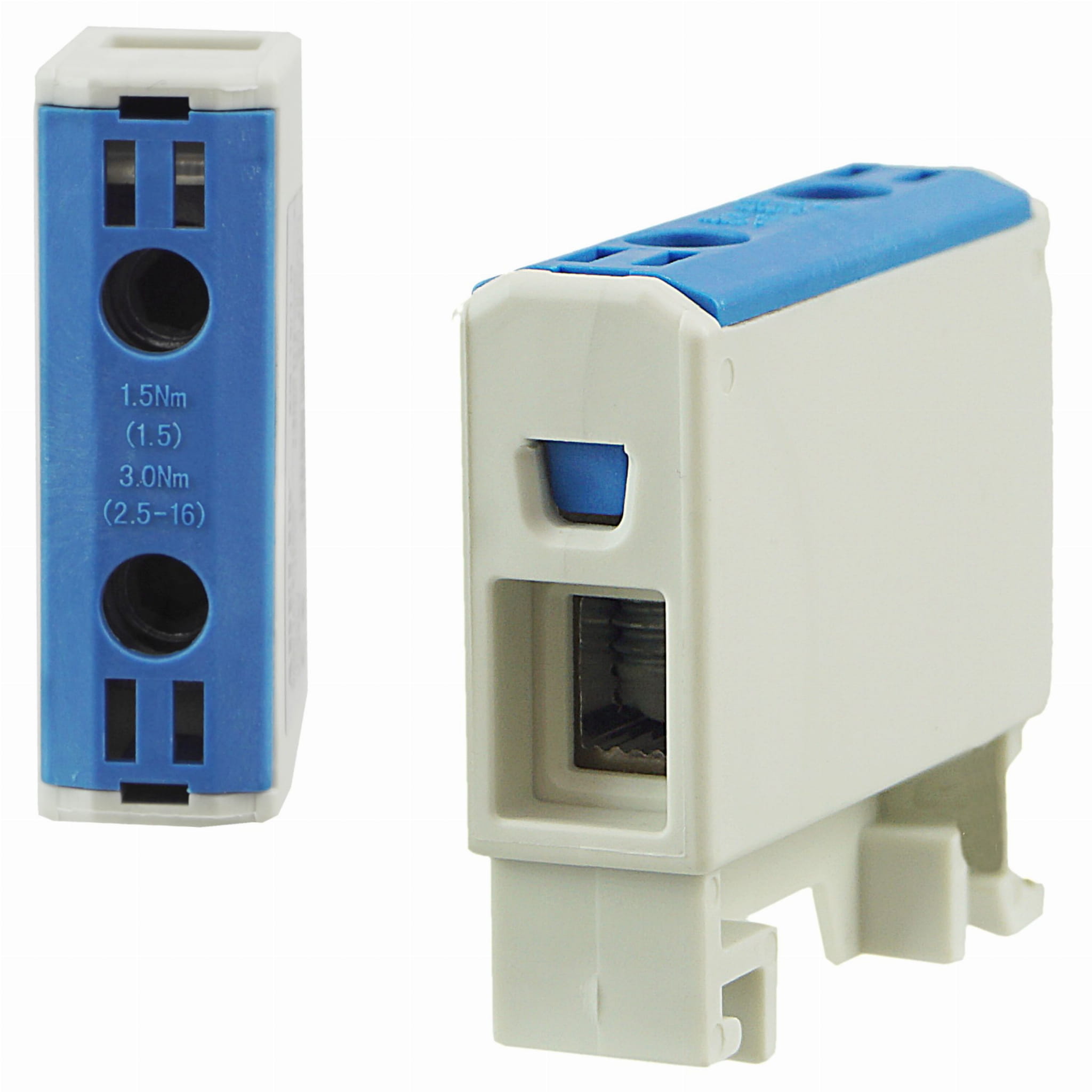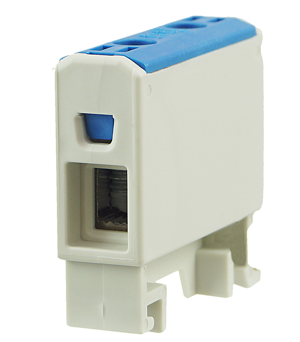 Uniwersalna listwa zaciskowa ZG, 1-polowa, z dwoma otworami, dla przewodów o przekroju od 2,5 do 35 mm2.