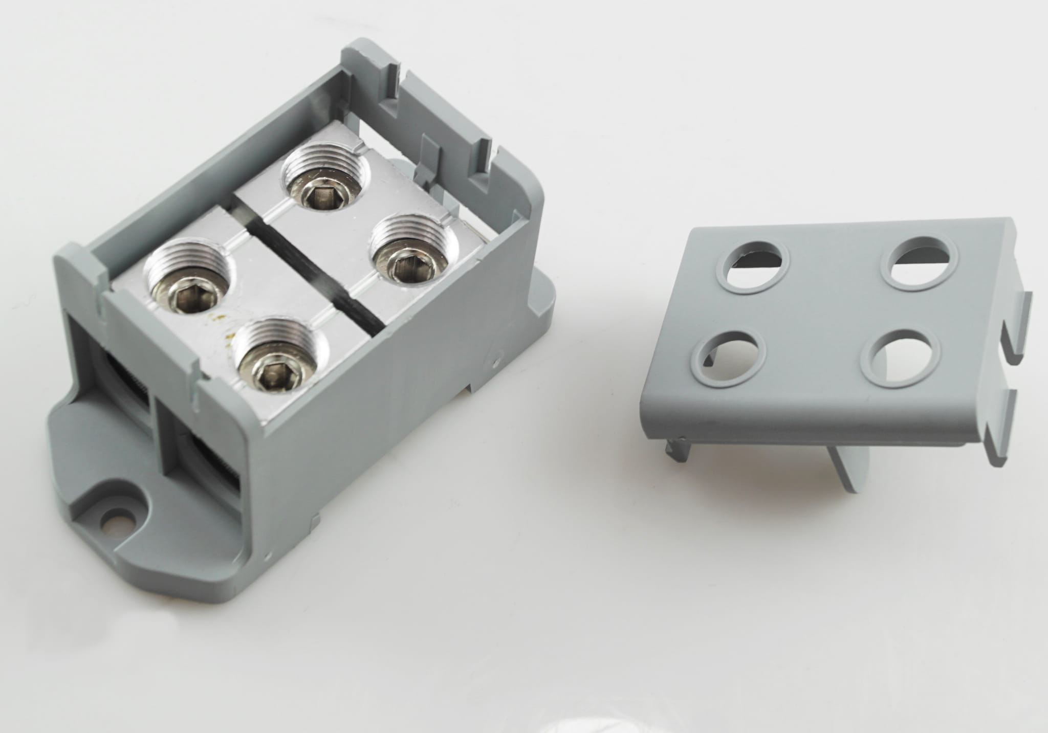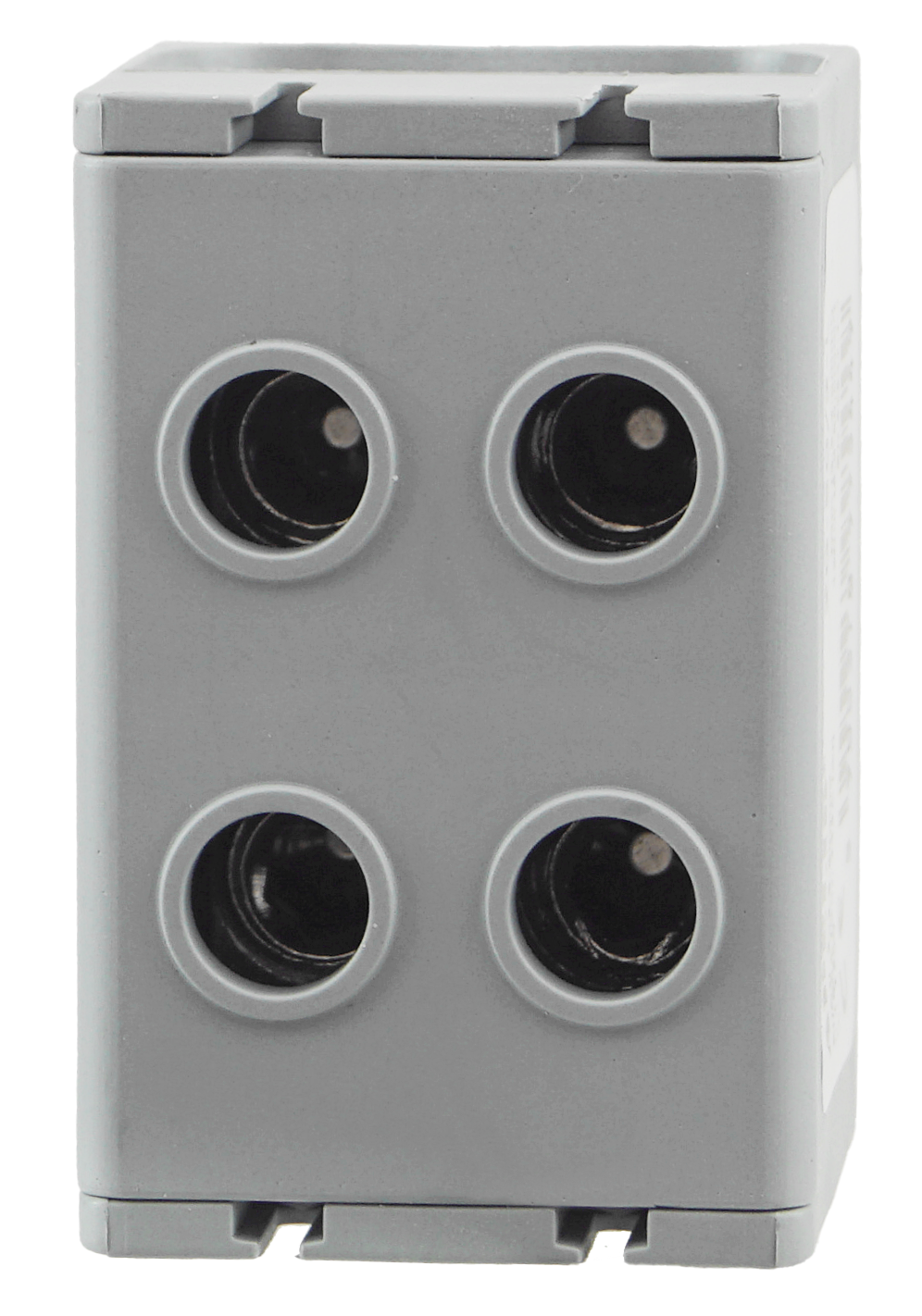 Uniwersalna listwa zaciskowa ZG, 1-polowa, z czterema otworami, dla przewodów o przekroju od 2,5 do 50 mm2.