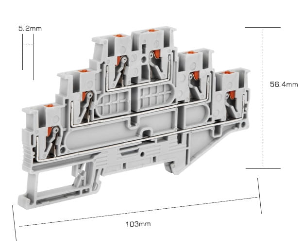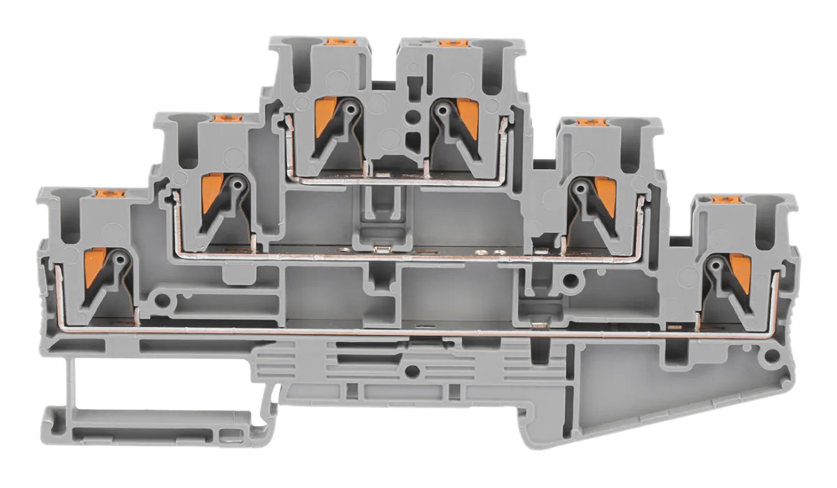 - Zacisk przewodu ochronnego ZS.PUSH.3F - trzypoziomowy zacisk instalacyjny, posiadający 6 zacisków, w odpornej na płomienie obudowie z nylonu PA66.