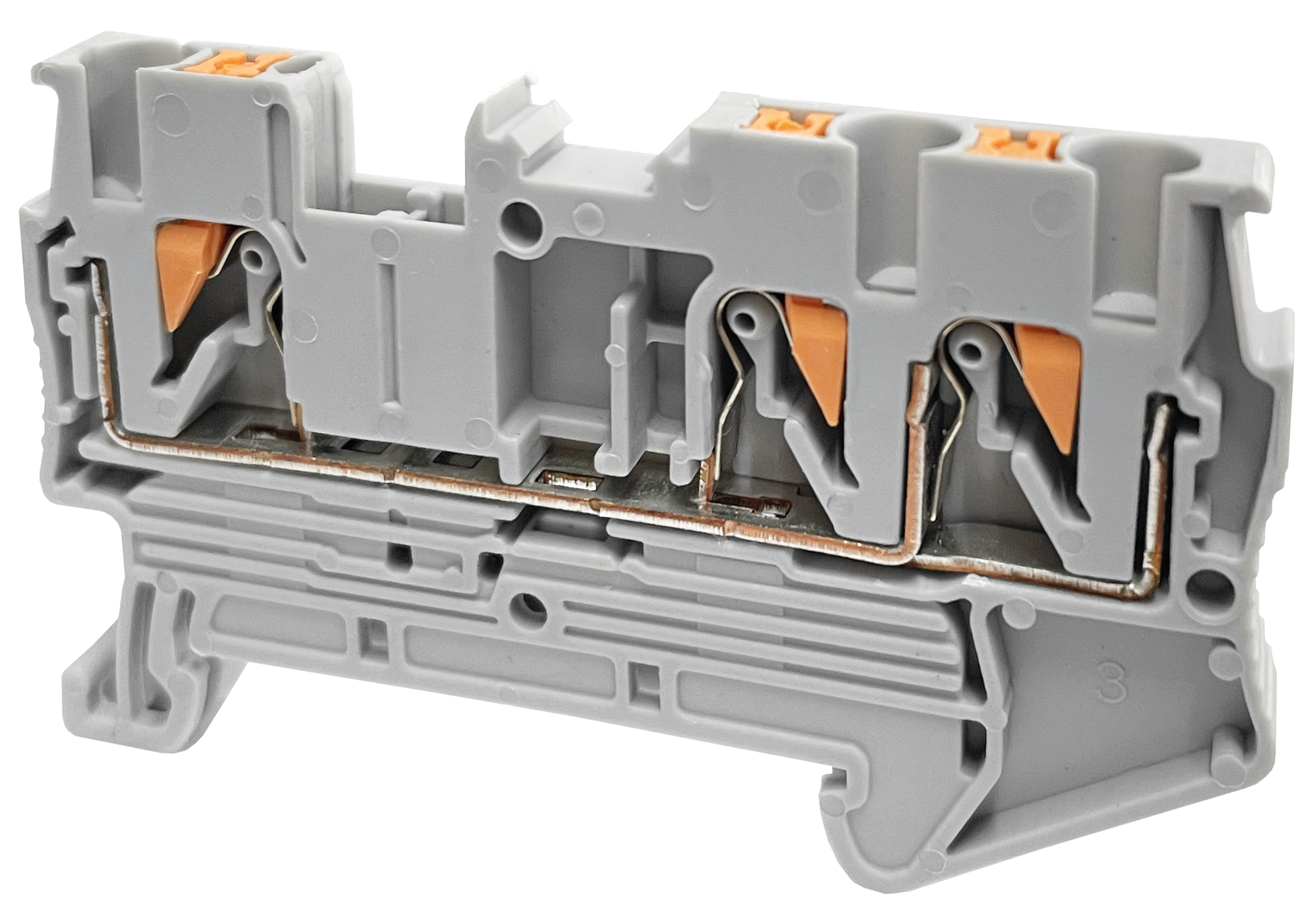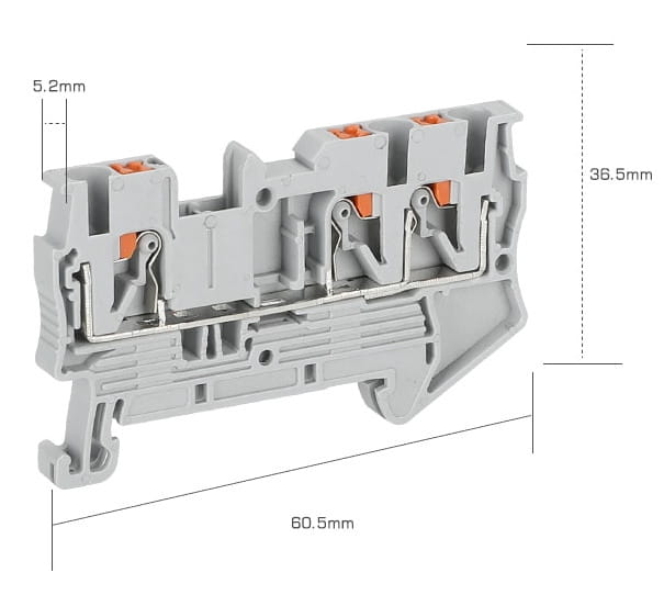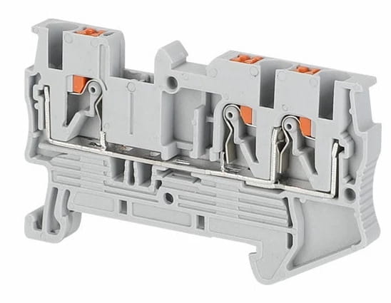 - Zacisk przewodu ochronnego ZS.1-2.GREY - jednopoziomowy zacisk instalacyjny, posiadający 3 zaciski sprężynowe w odpornej na płomienie obudowie z nylonu PA66.